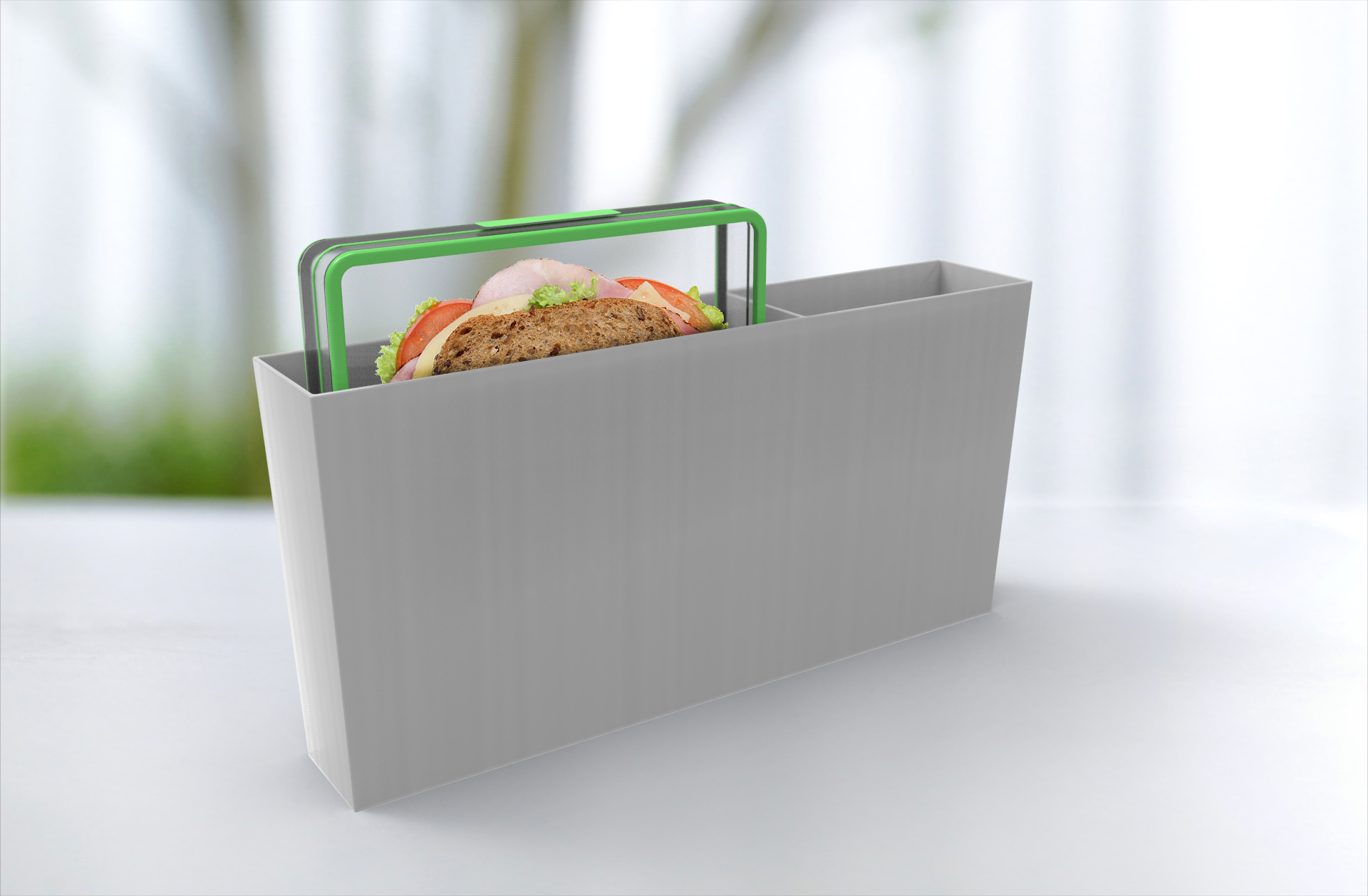 The SlimLine is the newest line of lunchboxes offered by EMSA. Developed by young professionals, for young professionals, this line offers slimmer lunchboxes designed to be carried in laptop or messenger bags. Unlike the much bulkier lunchboxes offered on the market today, the SlimLine offers a solution that does not spill, allows for all lunching foods, and fits within professional environments. The centrepiece of the SlimLine is the SlimFit sleeve; a sleeve designed especially for the SlimLine boxes. The lunch and snackbox fit snugly inside the sleeve, keeping the lunchboxes in place and easily accessible inside the bag. The sleeve also ensures that the clips cannot accidentally come loose if the bag is dropped or shaken, guaranteeing a spill-free experience.
